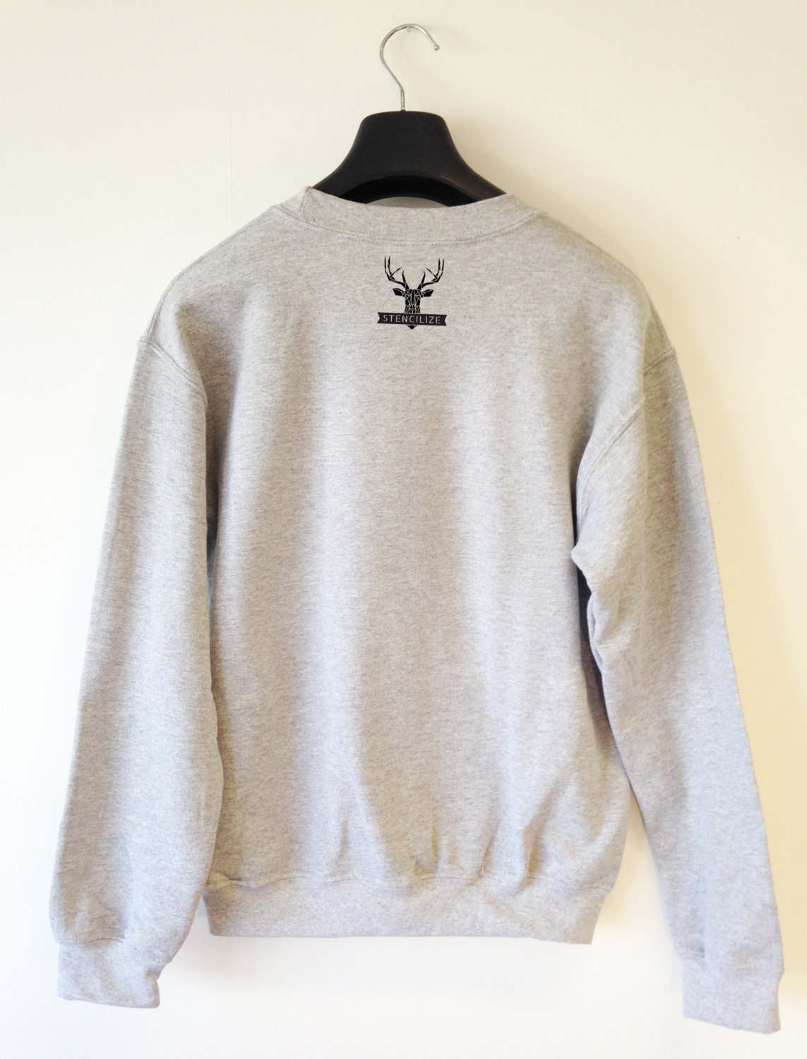 Cool casual streetwear with small Stencilize Stag logo printed on the back collar.